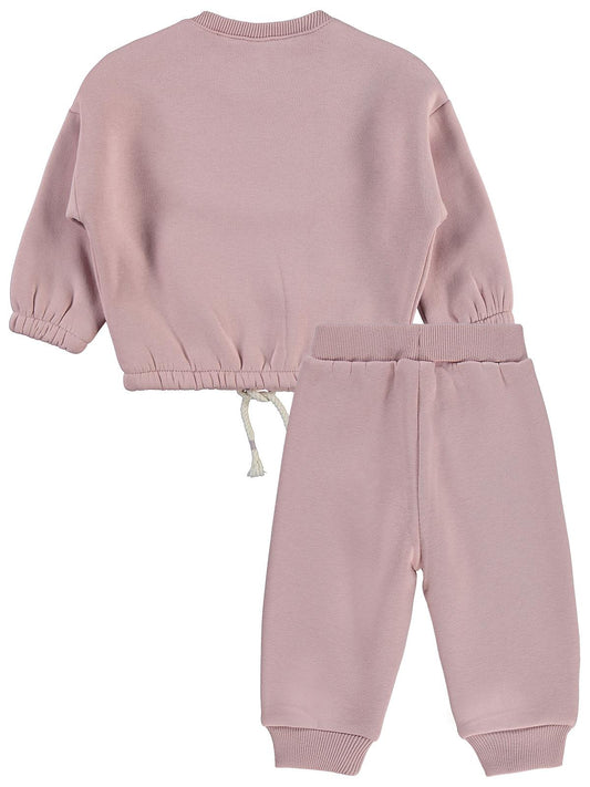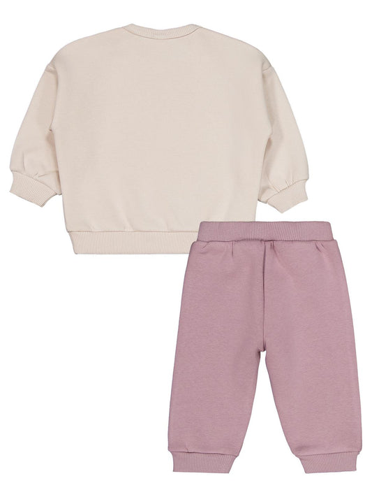 Civil girls kol fırfırlı çiçek baskılı 2-5 yaş eşofman takımı - bej