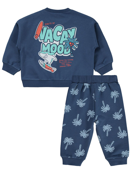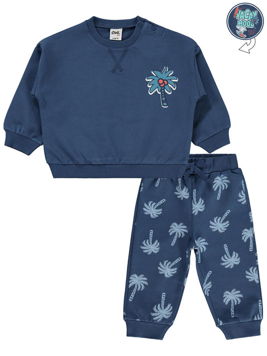 Civil girls kol fırfırlı sarmaşık nakışlı 2-5 yaş eşofman takımı - bej