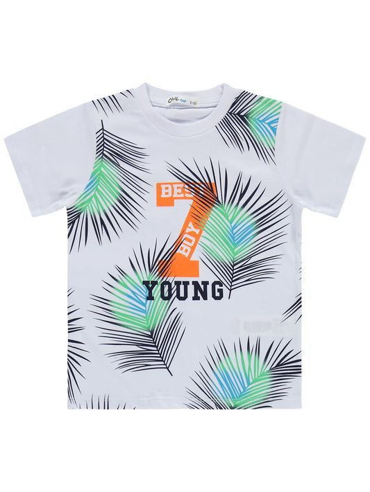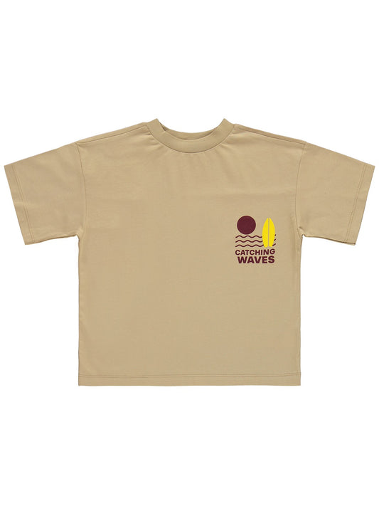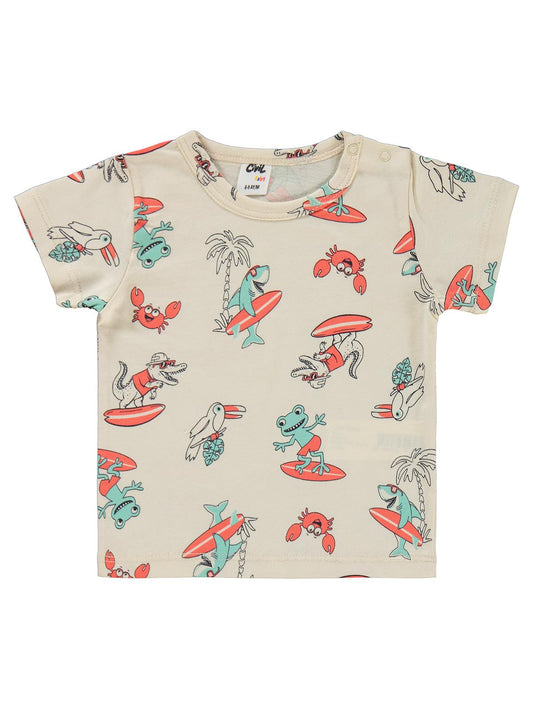 Civil boys erkek çocuk palmiye nakışlı polo yaka 6-9 yaş tişört - bej