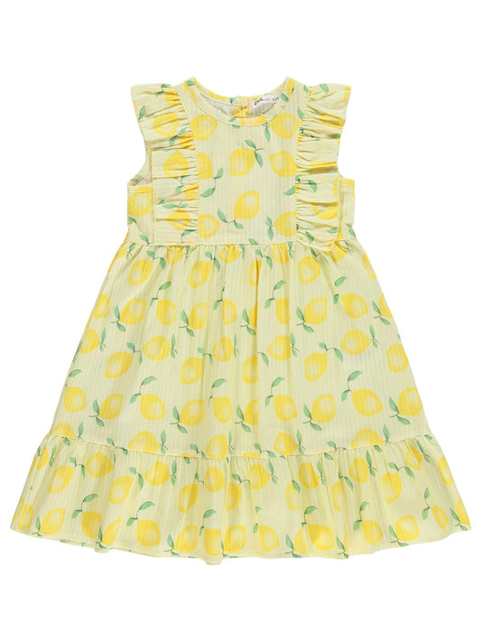 Cocoland leopar hırkalı fiyonklu elbise 2'li 2-5 yaş takım - sarı