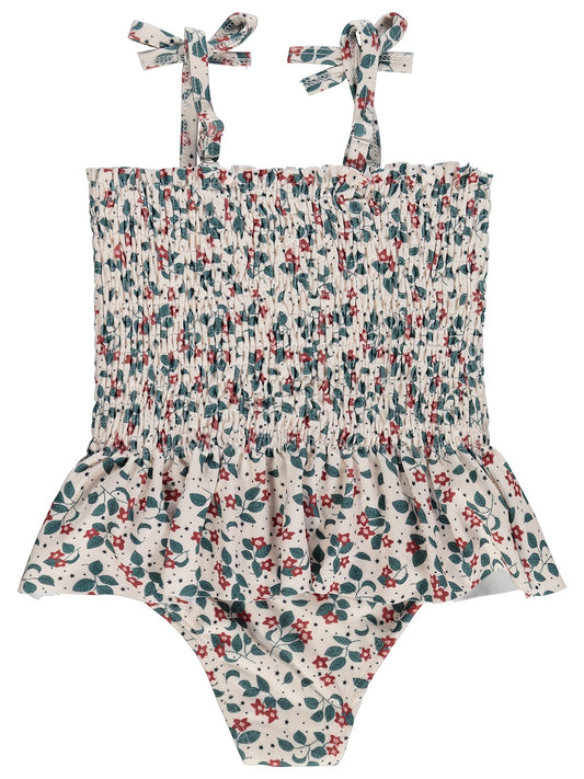 Civil girls çiçek baskılı 2-5 yaş elbise - kırık beyaz