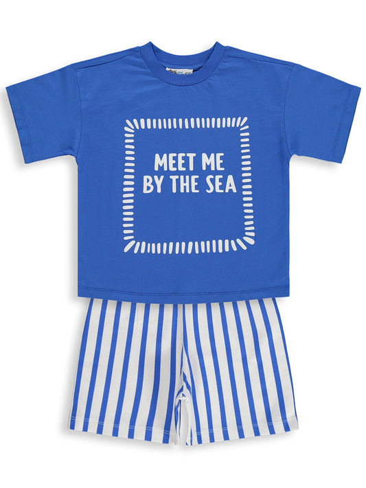 Civil boys meet my by the sea baskılı 2'li 3-9 yaş takım - mavi
