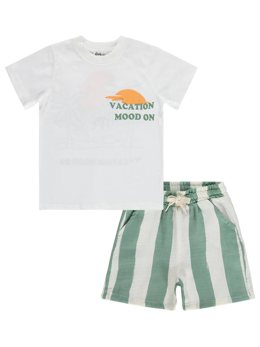 Lüks kumru tekstil zincir desenli fistolu 2 li 6-18 ay takım - ekru