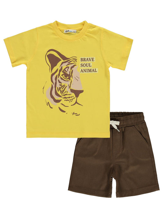Cocoland yelekli kareli gömlekli 3'lü 2-5 yaş takım - bej