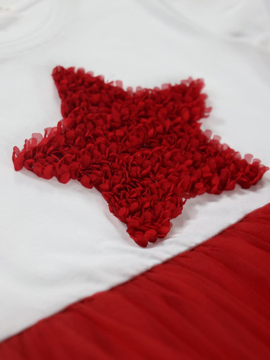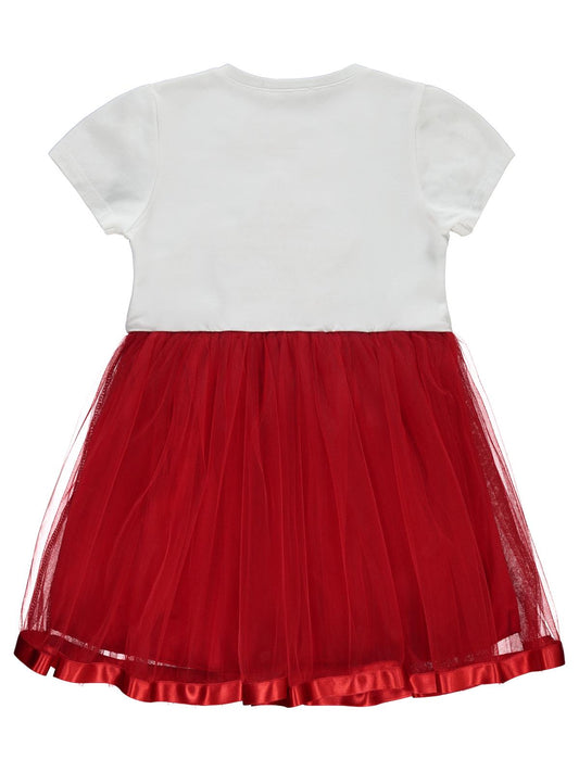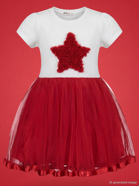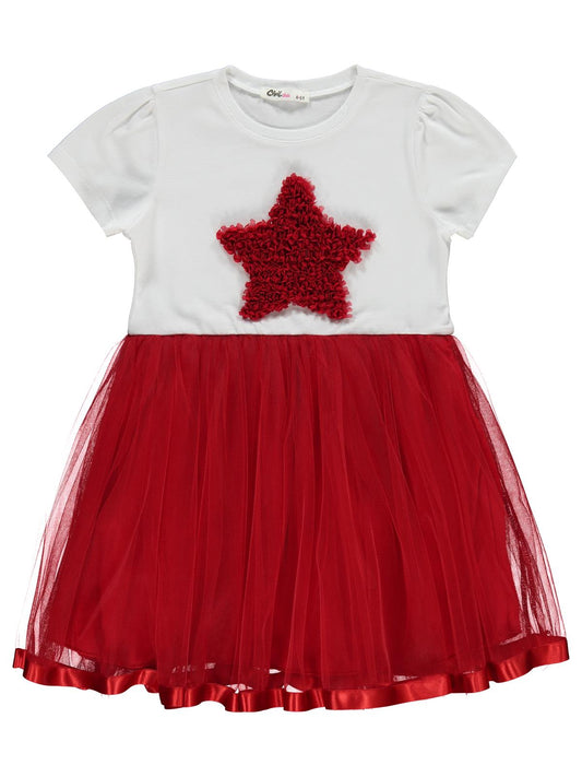 Civil girls yıldız lase nakışlı tüllü 4-9 yaş elbise - kırmızı