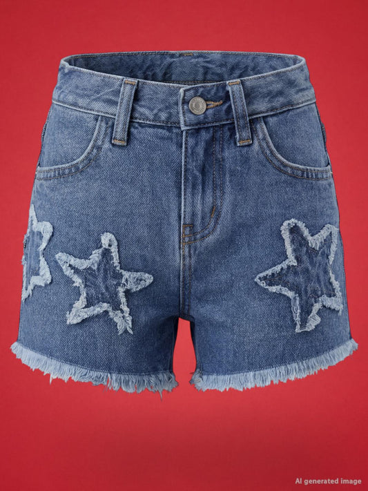 Civil girls nakışlı kot ceket etek 3 lü 2-5 yaş takım - mavi