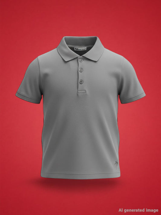 Civil boys erkek çocuk palmiye nakışlı polo yaka 6-9 yaş tişört - gri