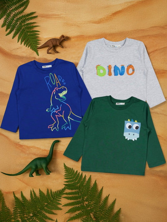 Civil boys cool dino baskılı 3'lü set 2-4 yaş sweatshirt