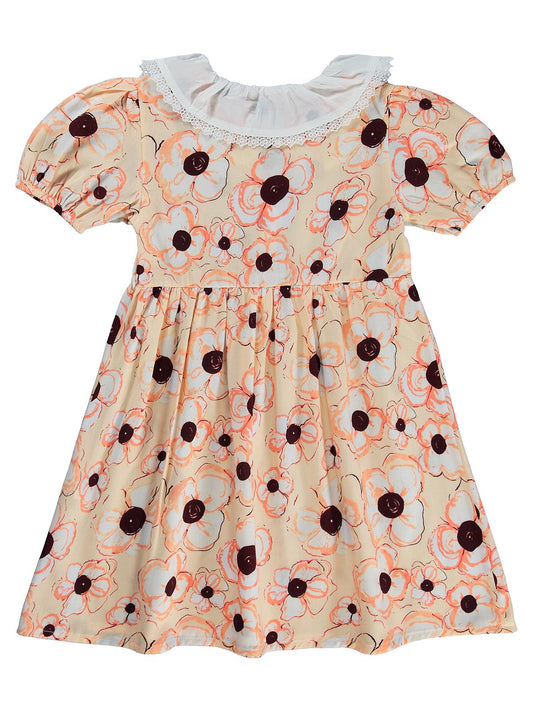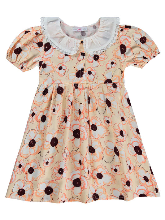 Cocoland leopar hırkalı fiyonklu elbise 2'li 6-9 yaş takım - sarı