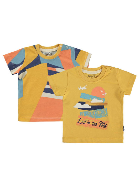 Miniworld geometrik desenli 2'in 1 pack 3-12 ay tişört - hardal