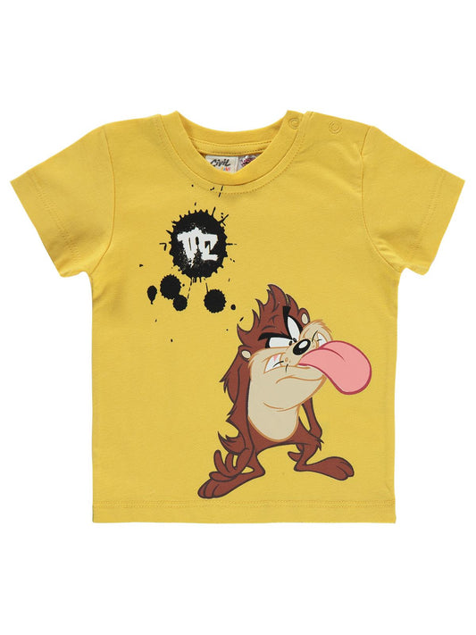 Tazmanya canavarı baskılı 6-18 ay tişört - hardal