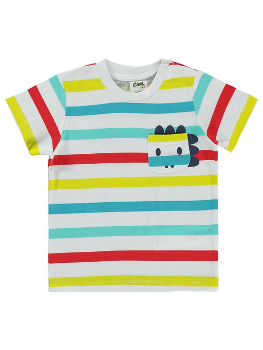 Civil baby 4 renkli çizgi empirme 6-18 ay tişört - beyaz