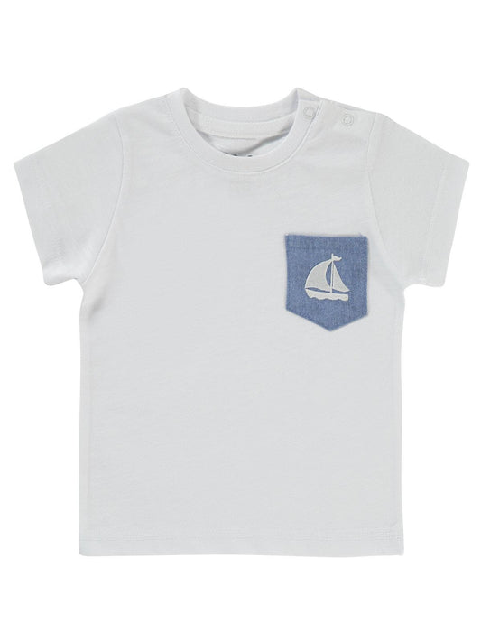 Civil baby yelkenli nakışlı 6-18 ay tişört - beyaz