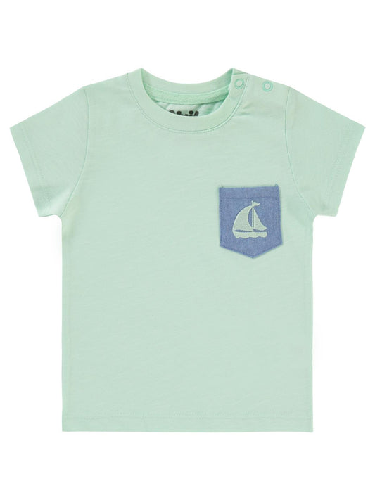 Civil baby yelkenli nakışlı 6-18 ay tişört - yeşil