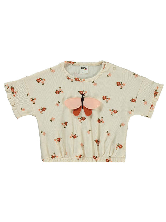 Civil baby çiçek empirmeli 6-18 ay tişört - fil dişi