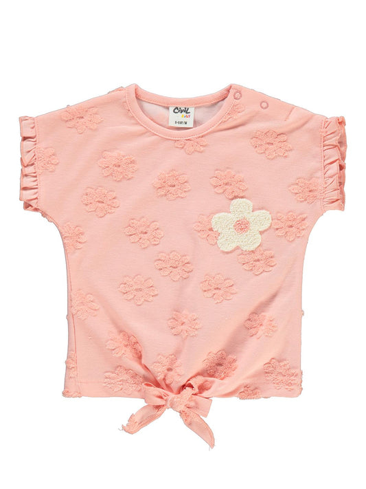 Civil baby papatya kabartmalı nakışlı 6-18 ay tişört - pudra
