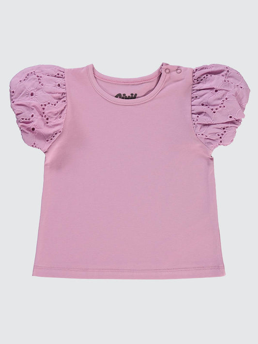 Civil baby brodeli balon kol basic 6-18 ay tişört - lila
