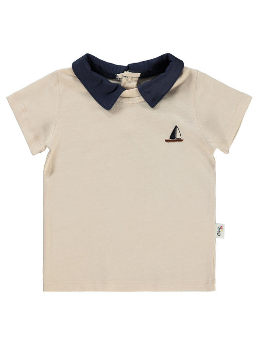 Civil baby yelken nakışlı 6-18 ay tişört - bej