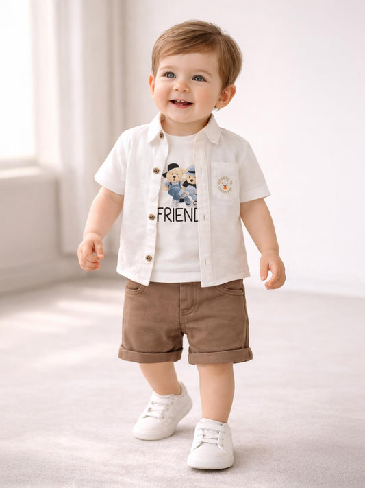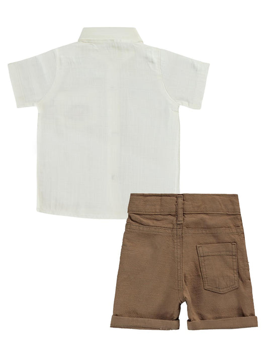 Concept müslin gömlekli şortlu 3'lü 6-18 ay takım - bej