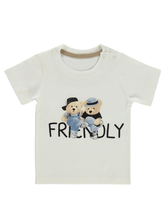 Concept pike çapalı tişört kot şortlu 2'li 6-18 ay takım - beyaz