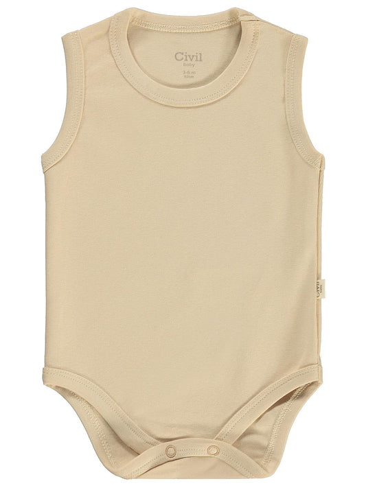Civil baby düz renkli 3-36 ay çıtçıtlı badi - bej