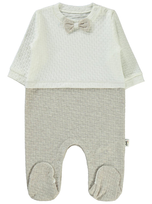 Civil baby desenli papyonlu 1-6 ay tulum - kahverengi