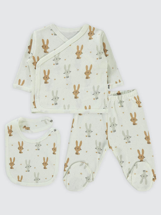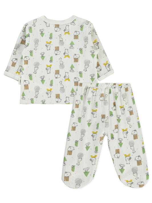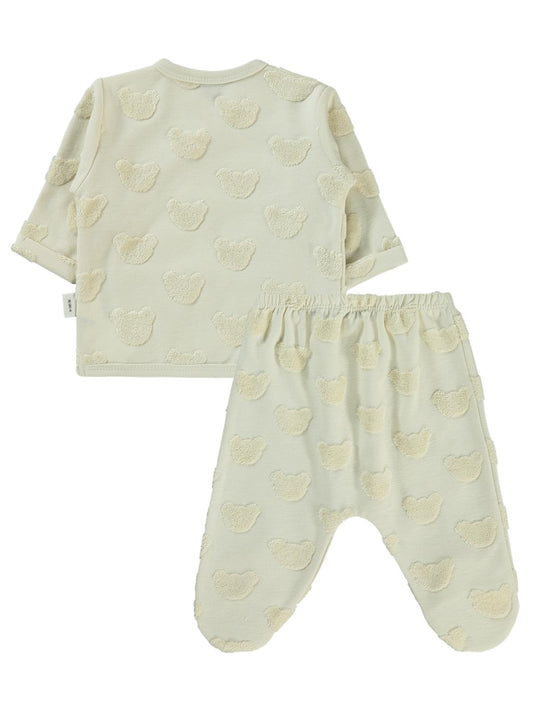 Civil baby ayıcık baskılı zıbın takımları - ekru