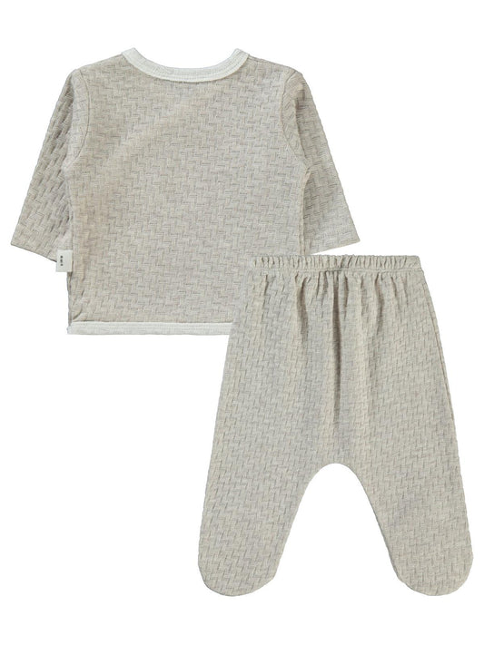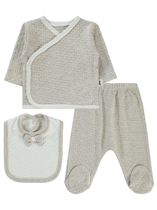 Civil baby kabartmalı ayıcık baskılı 0-1 ay zıbın takımları - bej