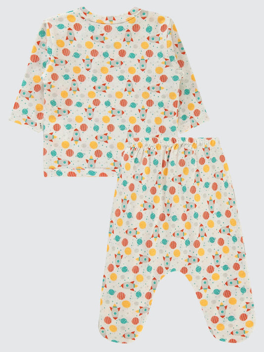 Civil baby araba baskılı 0-1 ay zıbın takımları - ekru