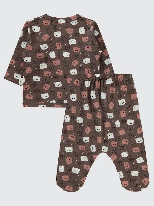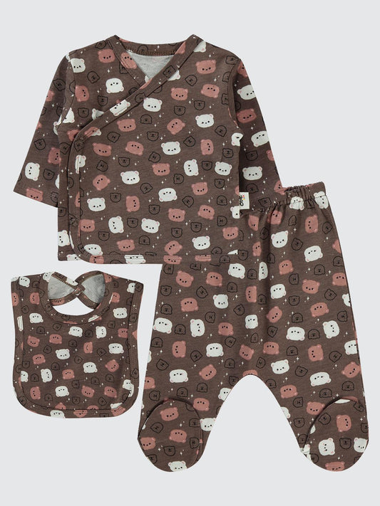 Civil baby ayıcık baskılı 0-1 ay zıbın takımları - kahverengi