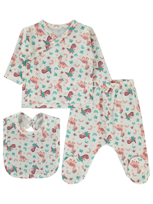 Civil baby dinazor baskılı 0-1 ay zıbın takımları - ekru