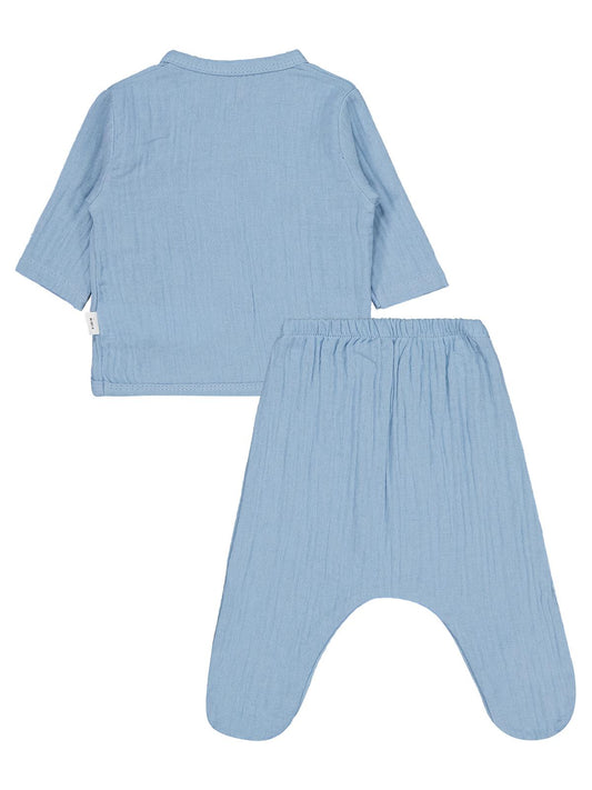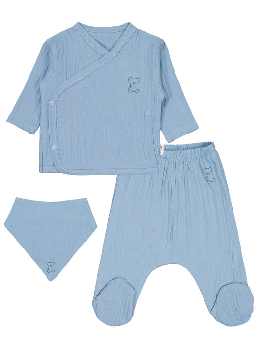 Civil baby ayıcık baskılı zıbın takımları - mavi