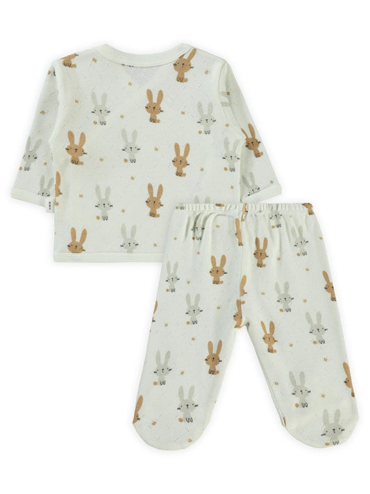 Civil baby tavşan baskılı 0-1 ay zıbın takımları - haki
