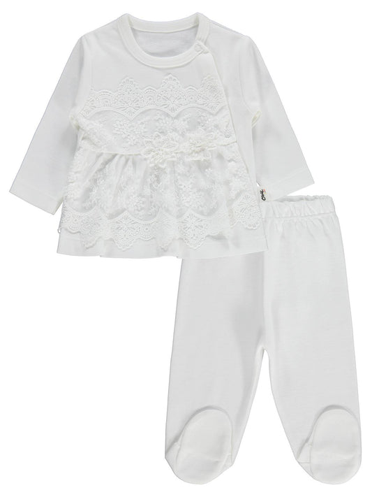 Civil baby fırfır tüllü 1-9 ay pijama takımı - ekru
