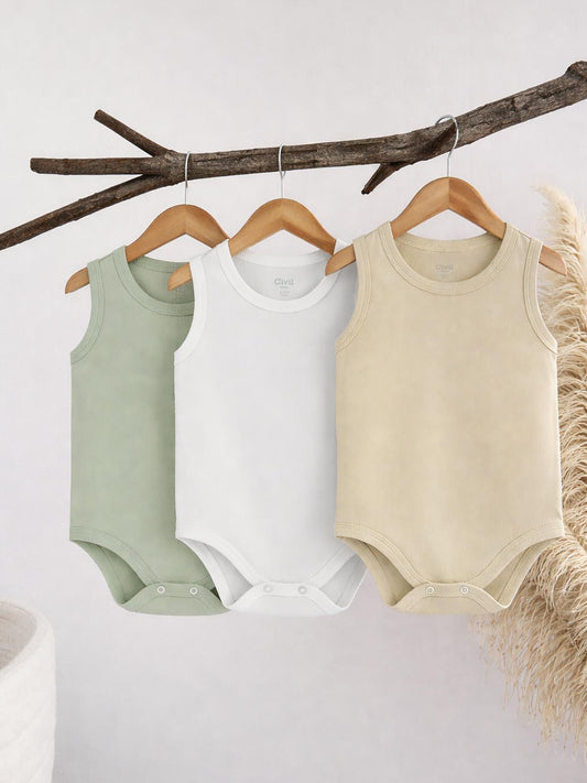 Civil baby 3'lü karışık renk 3-36 ay çıtçıtlı badi - bej