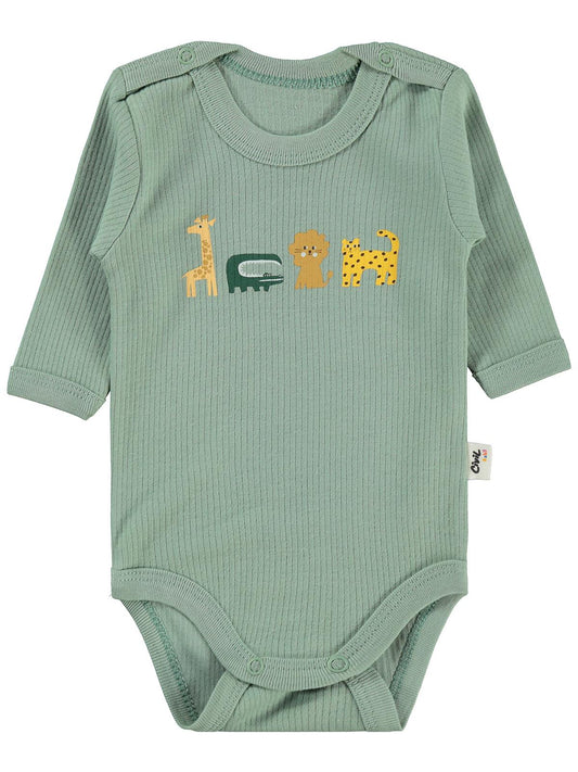 Civil baby hayvanlar baskılı 0-3 yaş çıtçıtlı badi - haki