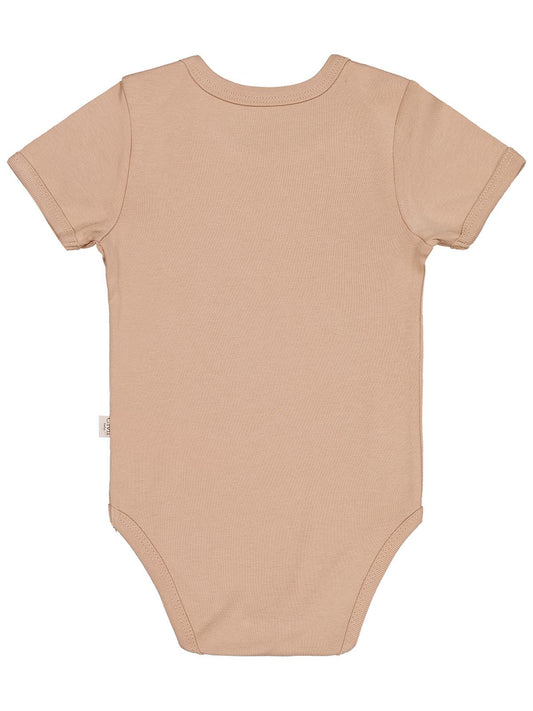 Civil baby düz renkli kısa kol 1-3 yaş çıtçıtlı badi - kahverengi