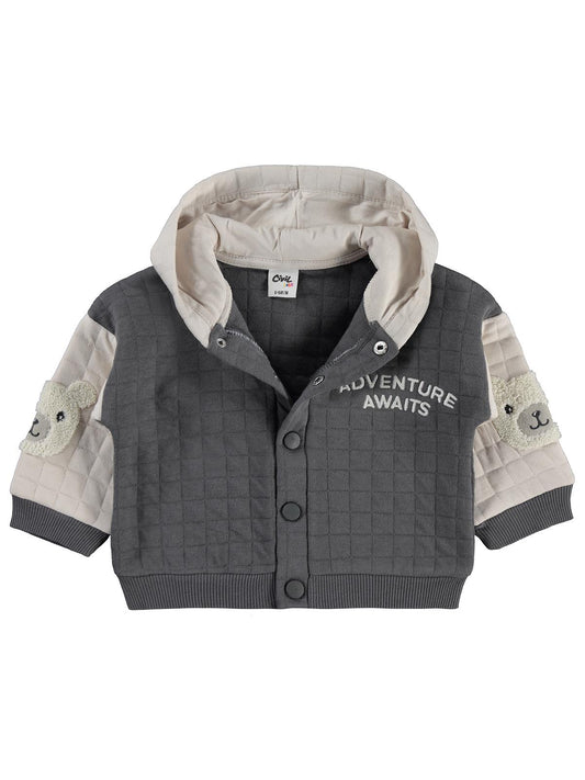 Civil baby kol ayıcık nakışlı 6-18 ay hırka - gri