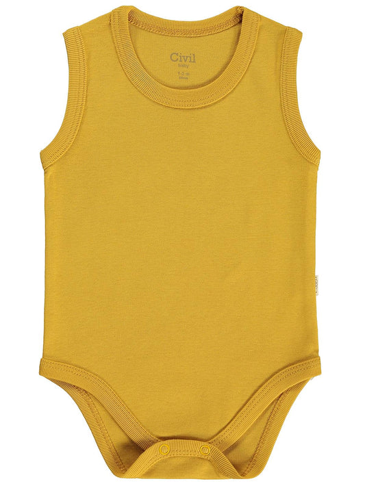 Civil baby düz renkli kısa kol 1-3 yaş çıtçıtlı badi - sarı
