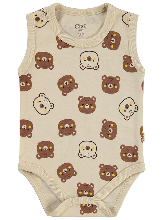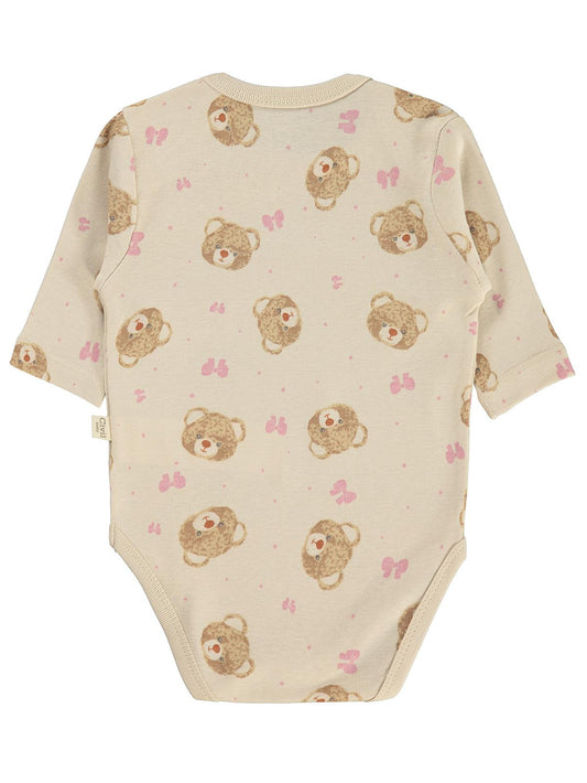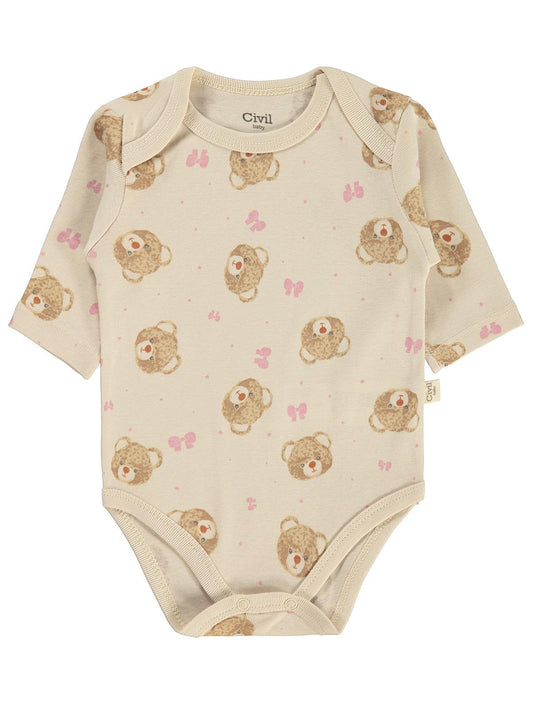 Civil baby ayıcık empirmeli 3 lü 0-36 ay çıtçıtlı badi - bej