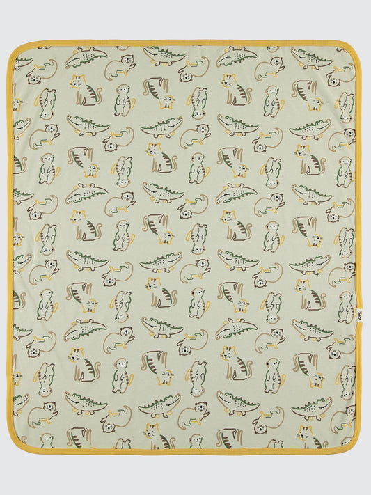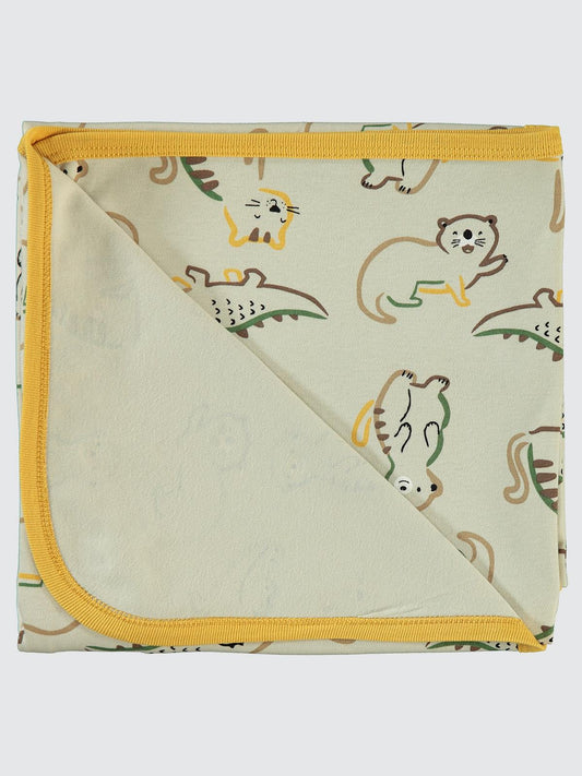 Civil baby renkli hayvanlar baskılı battaniye - hardal