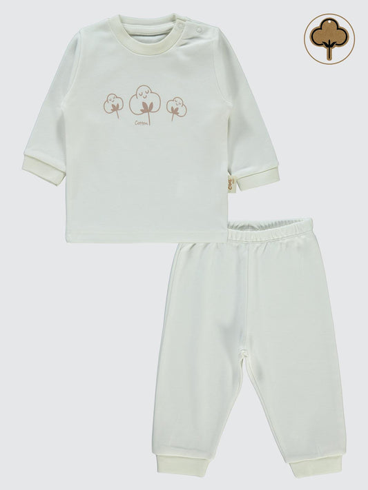 Civil baby organik pamuklu 0-6 ay bebe pijama takımı - ekru