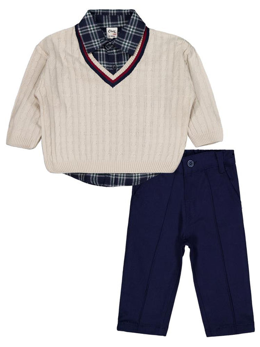 • Civil baby v yaka kazak 3'lü set 6-18 ay takım - bej