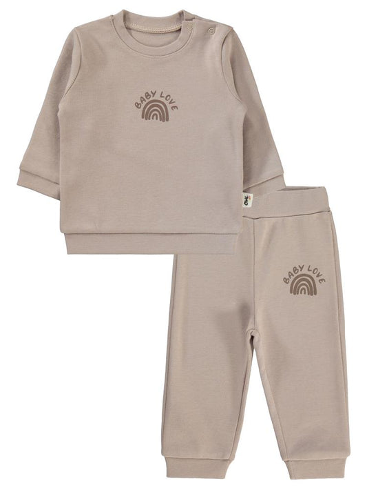 Civil baby gökkuşağı baskılı 6-18 ay takım - kahverengi