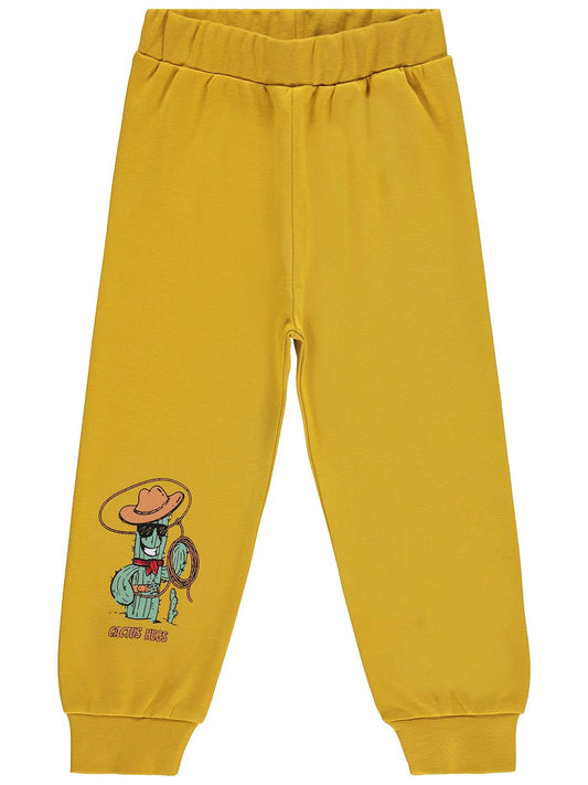 Civil boys erkek çocuk kovboy kaktüs baskılı 2-5 yaş eşofman altı - hardal