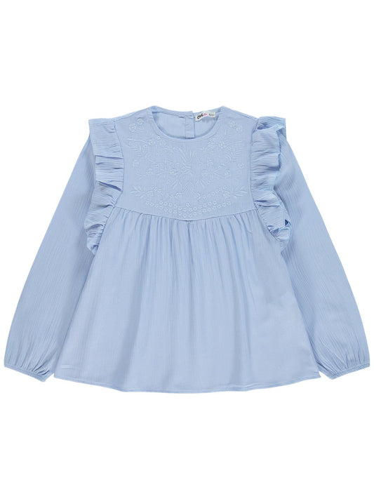 Civil girls kolu fırfırlı 10-13 yaş gömlek - mavi