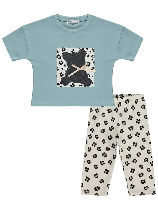 Civil girls leopar ayıcık desenli 2-5 yaş takım - yeşil