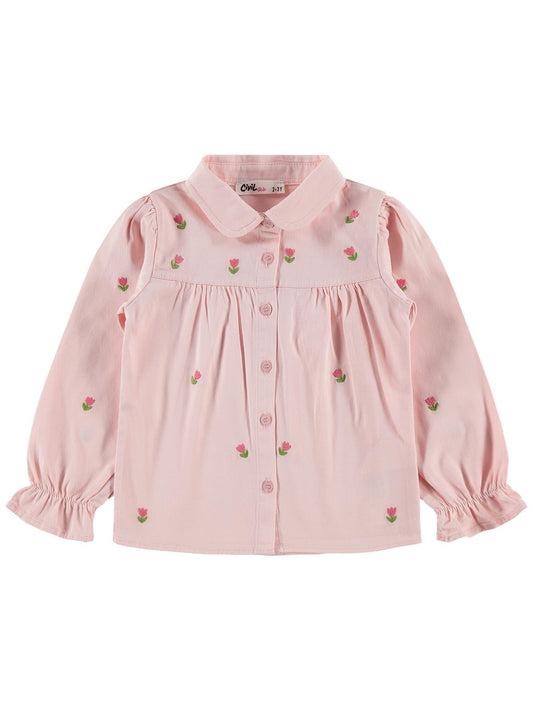 Civil girls kız çocuk lale nakışlı 2-5 yaş gömlek - pembe