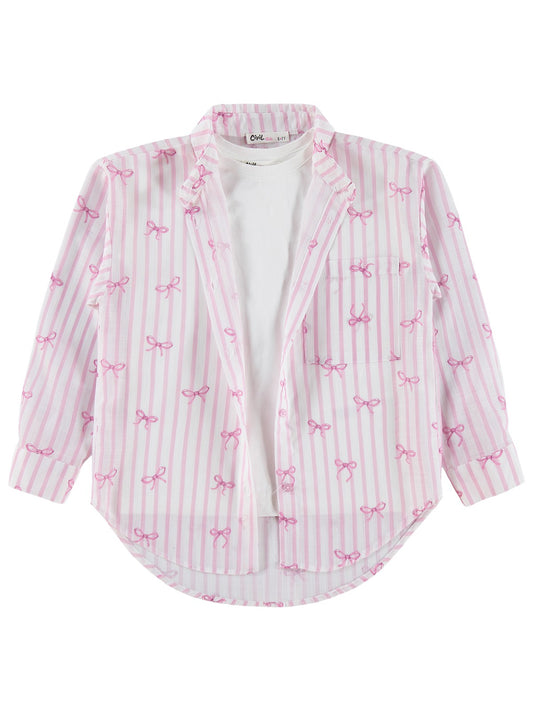 Civil girls fiyonk baskılı 6-9 yaş gömlek - pembe