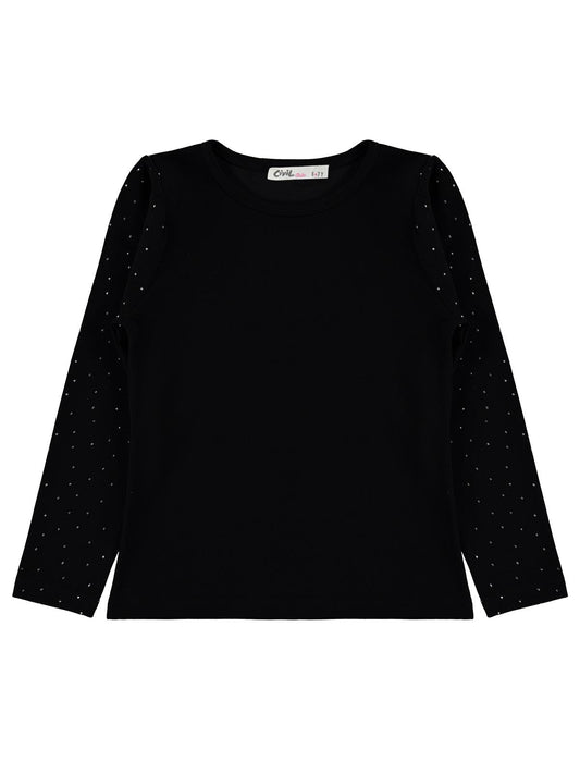 Civil girls taşlı 6-9 yaş tişört - siyah